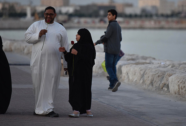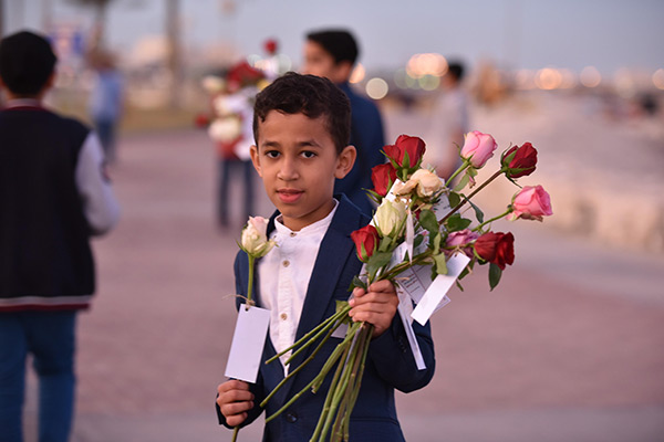 بالصور.. ”فتية آمنوا“ يوزعون الورد بمناسبة مولد النبي محمد في كورنيش القطيف