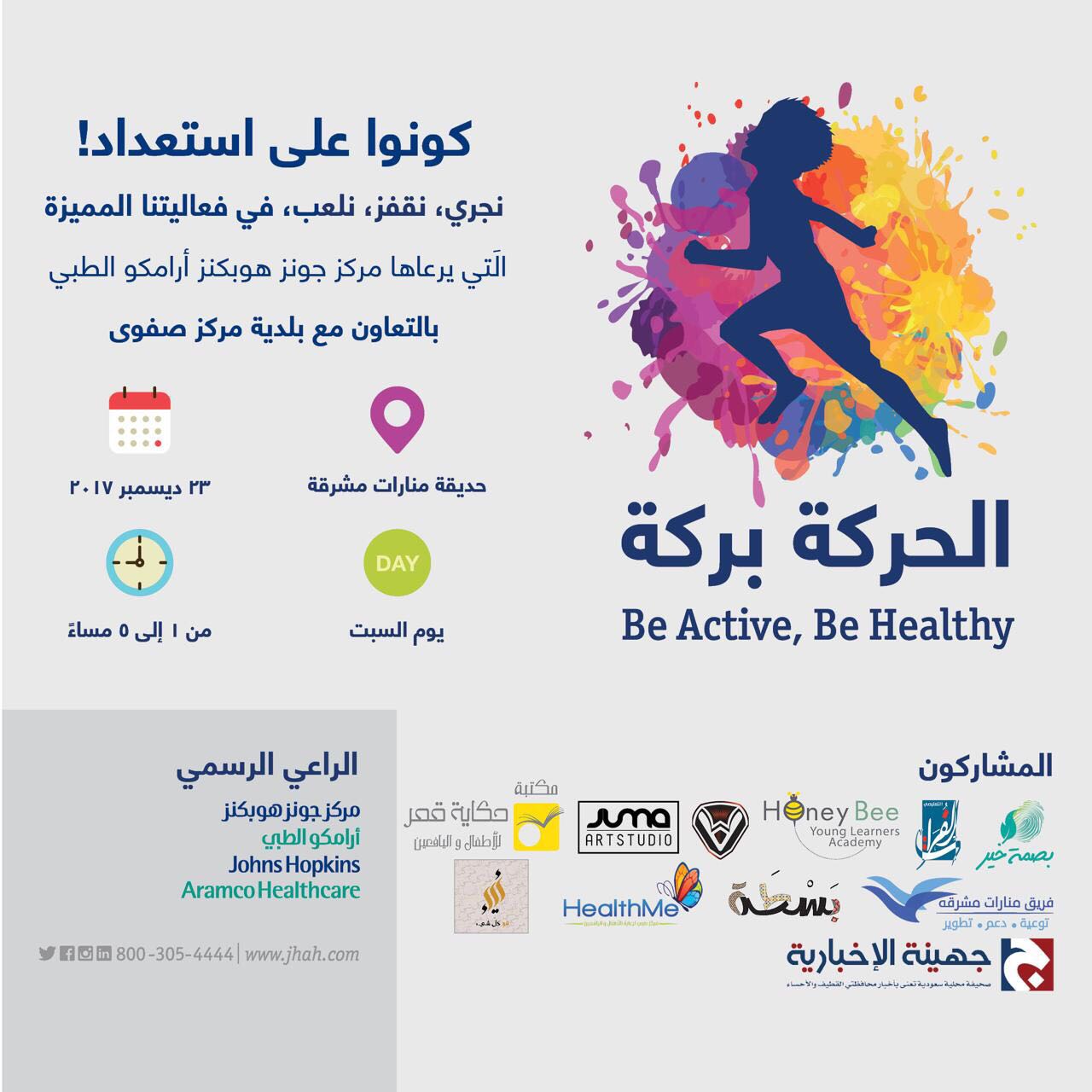 يرعى مركز جونز هوبكنز أرامكو الطبي بالتعاون مع بلدية مركز صفوى فعالية «الحركة بركة» والتي ستقام يوم السبت في حديقة منارات مشرقة.