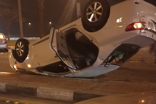 بالصور.. وفاة 3 شبان اثر انحراف ”سيارة“ اثناء جلوسهم في كورنيش القطيف