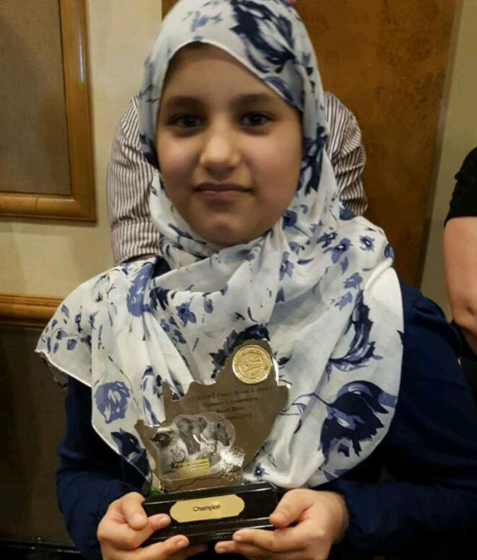 1 - زينب بنت أمين أبو الرحى - مدرسة الحصان الأهلية الابتدائية بالدمام، الملتحقة ببرنامج رعاية الموهوبات بالقطيف.