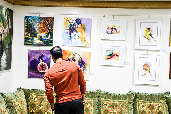 كما أقامت مجموعة ”حكايا الفن“ معرضا فنيا جماعيا لبعض أعضائها، حيث تحدث رئيس المجموعة منصور علي عن الأنشطة والبرامج التي تقوم بها المجموعة في مختلف مجالات الفنون.