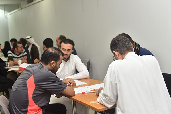 ووزع الحضور على 10 فرق كل فريق يخط أفكاره ومقترحاته على لوحات عريضة تعلق على جدران الديوانية لمناقشتها لافتا إلى أن الادارة ستقوم بدور المستمع لها وتعرض الخلاصة والنتائج في نهاية اللقاء ومن ثم دراستها وأخذها بعين الاعتبار.