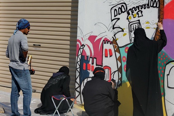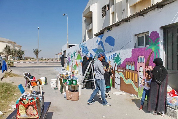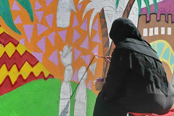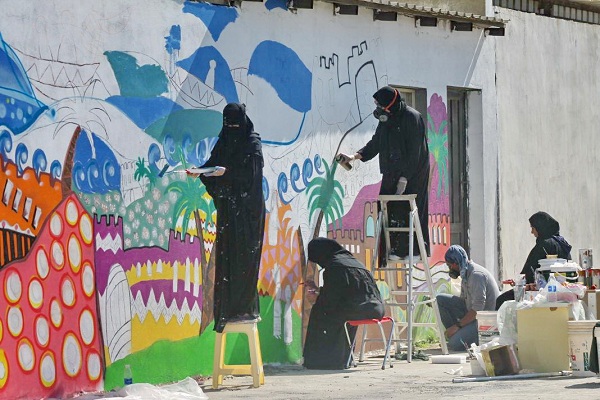بالصور.. تشكيليات يزين صفوى بجداريات فنية في «ديرتنا ملونة»