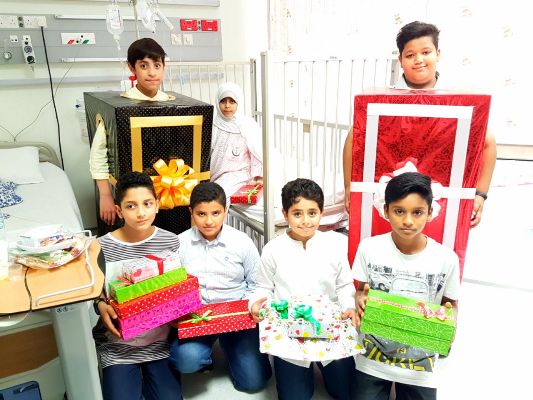 طلاب يوزعون الهدايا على الأطفال المرضى في القطيف المركزي