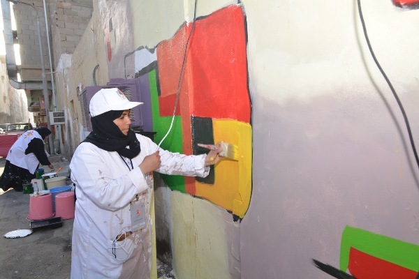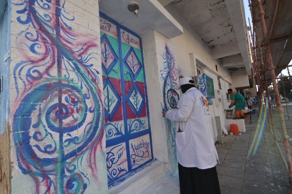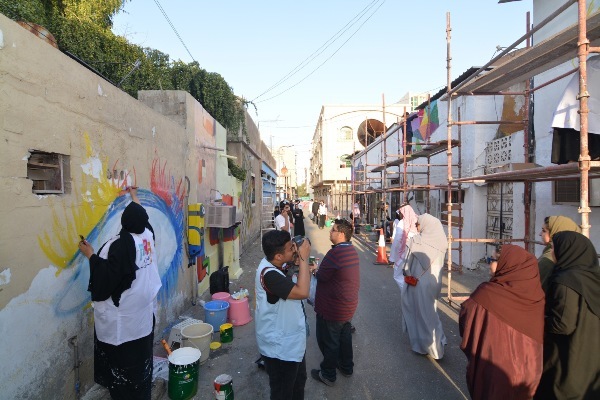 بالصور.. 19 فنان وفنانة يلونون مباني الأحياء الشعبية بالخبر