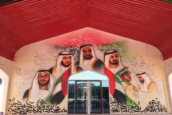 سعوديان يرسمان قادة الإمارات على جدارية شرطة دبي