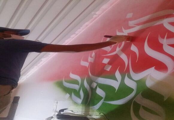 وذكر أنهما استخدما الألوان الزيتية وألوان السيارات في تنفيذ الجدارية للمحافظة على مظهر الرسمة وتدوم سنوات طويلة.