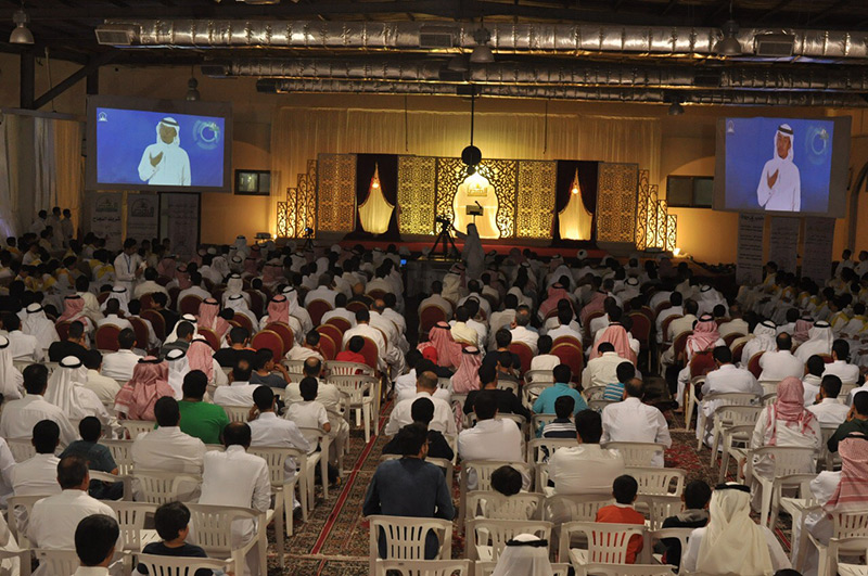 وابتدأ الحفل بتلاوة عطرة للقرآن الكريم من شبل جمعية تراتيل الفجر القرآنية علي خضر الغاشي، تلاه المنشد السيد عبدالرحمن الرفاعي بتواشيح إنشادية إيمانية.