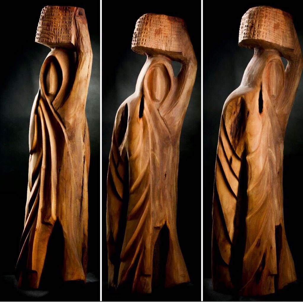 جسد شخصية «الراوية» وهي التي تحمل ”تنكة“ الماء على رأسها وتجلب الماء للطبخ أو للشرب، أما «سيدة الماء» فهي لإضفاء هالة القدسية عليها كونها تميل إلى شكل المرأة الكبيرة صاحبة الشأن، موضحاً أن كل الاعمال ترمز لذهاب النسوة للماء وهذه سيدتهم.