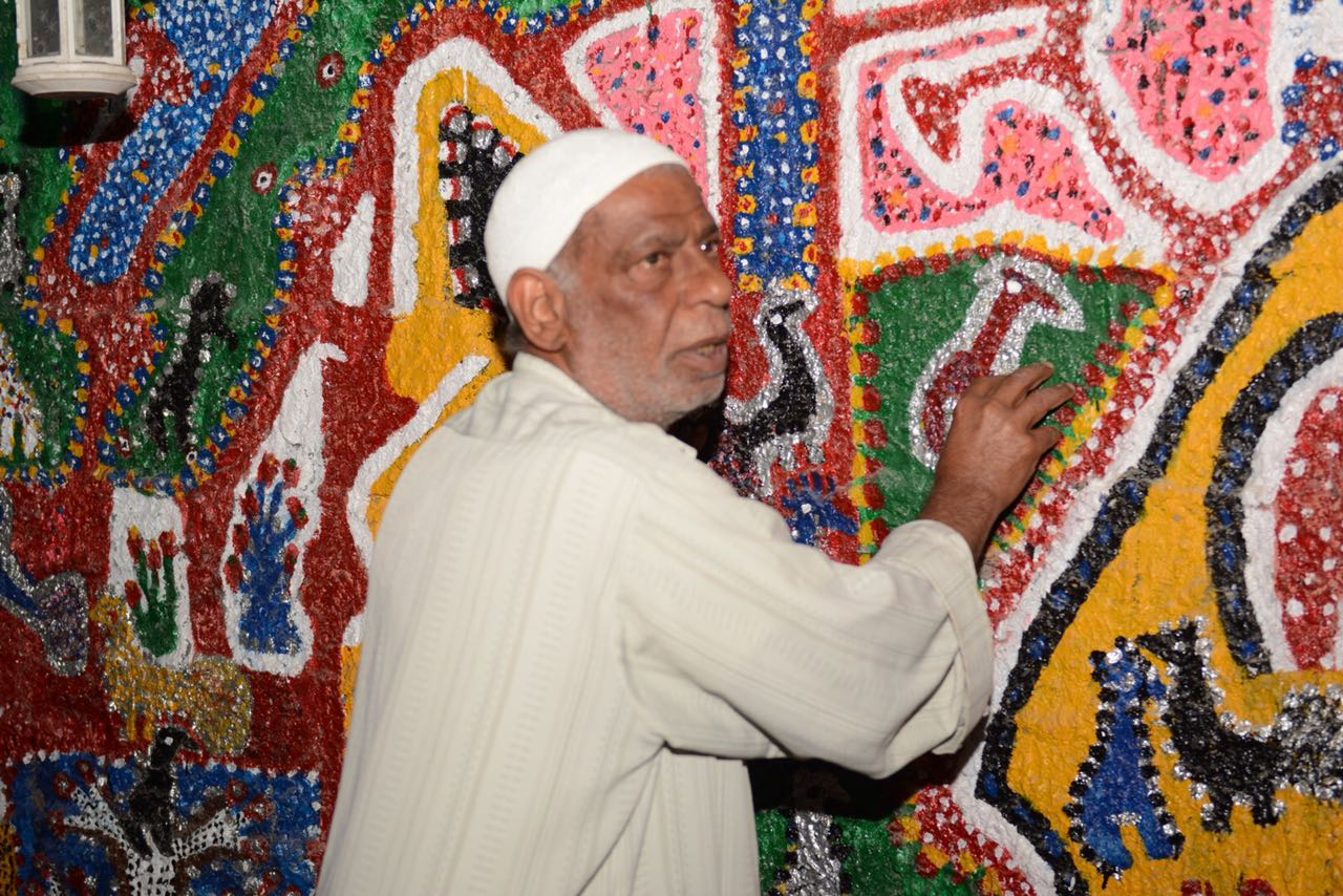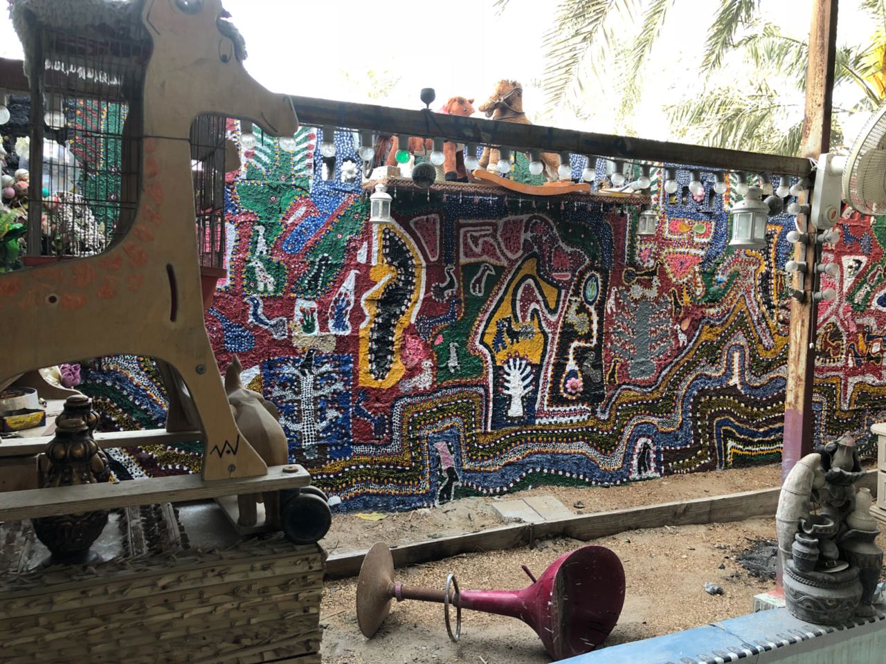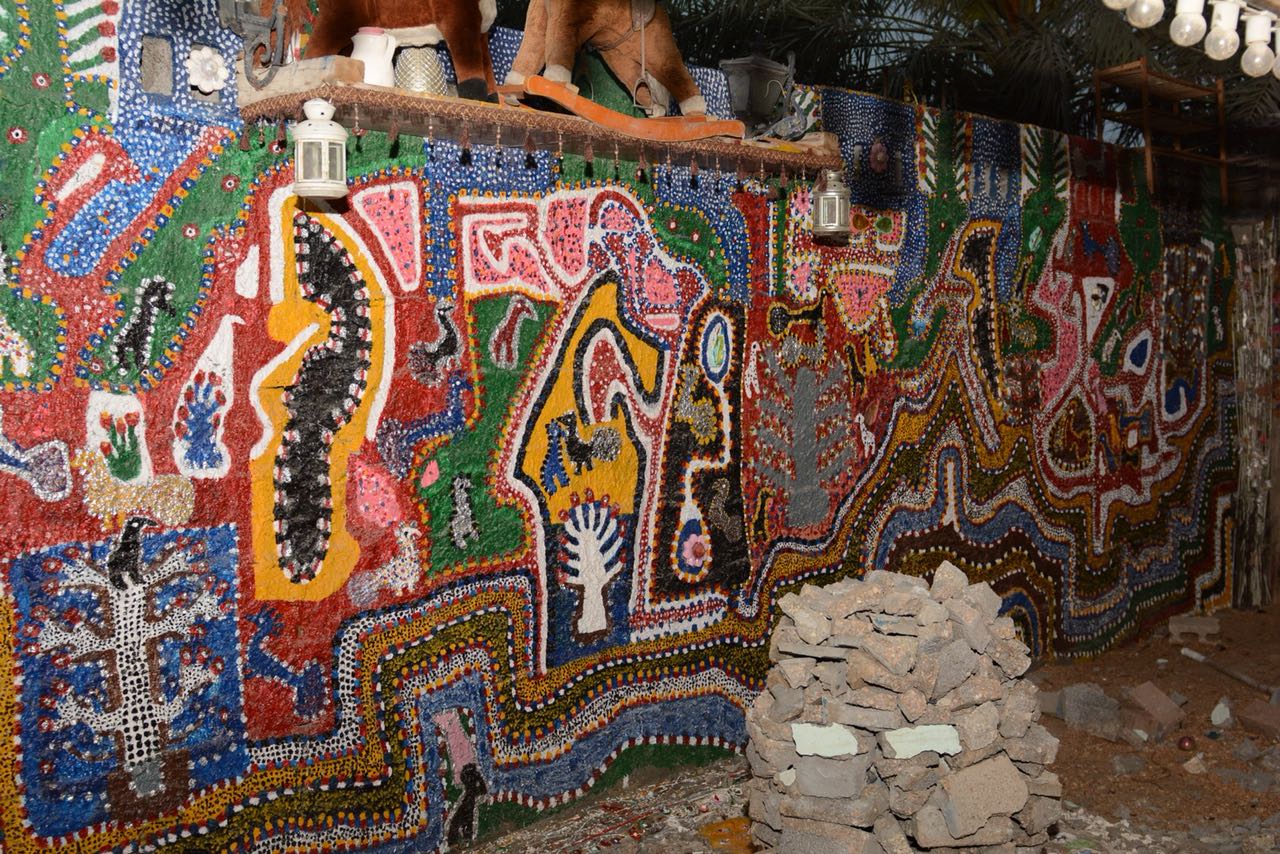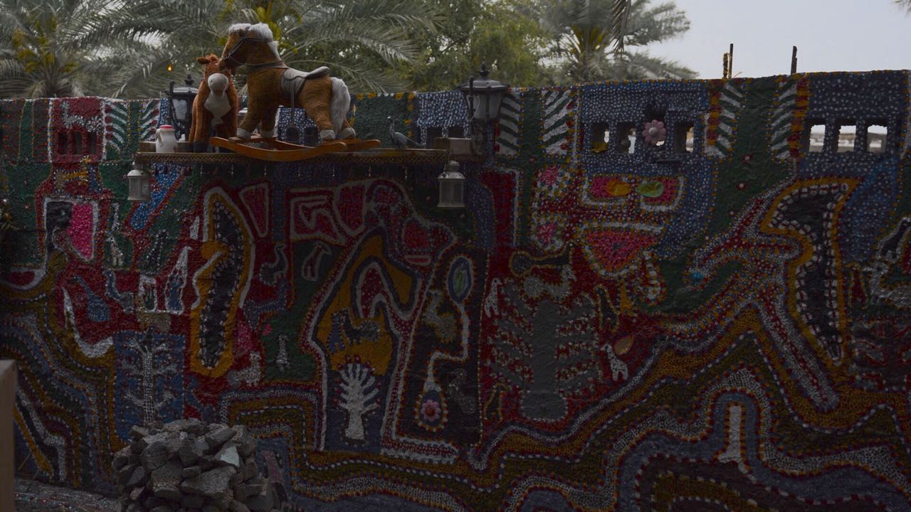 حول ”أبوخليل“ المتقاعد ذو - 66سنة - هروبه من مصاعب الحياة ومعتمداً على حسه الفني وحده إلى جداريات شعبية مطعمة بالفسيساء، مستخدماً تقنية ”الضرب بالريشة“ في الرسم، عاكفاً في مزرعته التي لا تبعد عن منزله سوى عدة خطوات منذ أكثر من 5 سنوات.