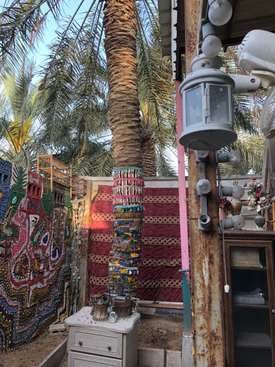 ركن ”ماء السبيل“ الذي حوله لتحفة فنية وكان نقطة بداية هذا المشوار، واقفاً بقرب السور ستصادفه في أي ساعة من ساعات النهار يحرك سلمه على امتداد جدران مزرعته حاملاً ريشته وعلبة الطلاء.