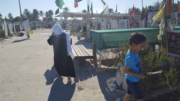 حينما تنظر إلى وجوههم البريئة؛ تبصر مسحة الحزن فيها؛ وكسرة اليتم؛ ومع هذا وقف الأيتام الثلاثة عند مدخل مقبرة جزيرة تاروت؛ يوزعون بسعادة شتلات الورد والريحان على زوار المقبرة.