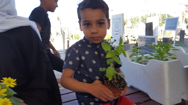مرتجى ابن خالتهم؛ اليتيم أيضا منذ تسعة أشهر يقول: لو كان أبي موجود؛ لسعد بما نفعل؛ وحتى يكون سعيدا احضرنا 100 شتلة ورد وريحان وقمنا بتوزيعها مجانا.
