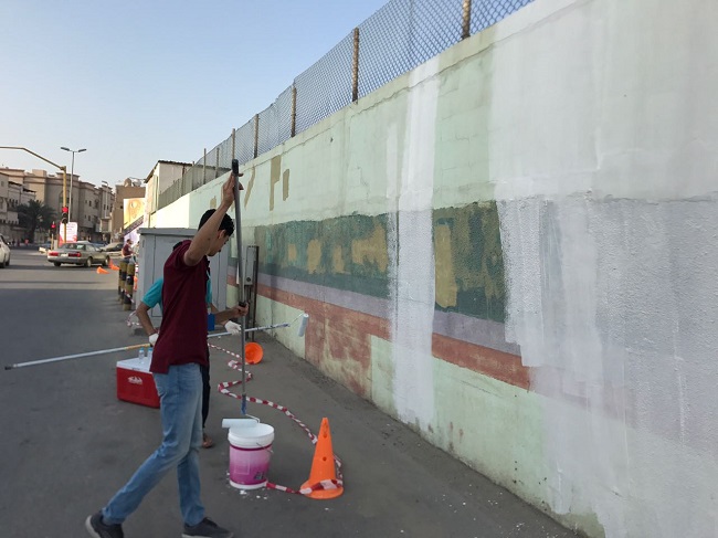 وتم الانتهاء من تهيئتها بوضع الطلاء الأساس للجدارية، على أن يشرعوا بالرسم عصر الخميس القادم بمعية 10 فنانون من عدة مناطق ومن المقرر الانتهاء منها خلال خطة عمل 15 يوم.