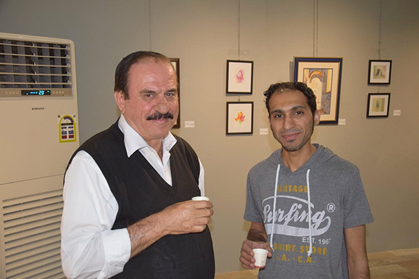 مع التشكيلية خاتون الجشيوأشارت الى ان أكثر مالفتها في المعرض ”اللوحات الصغيرة“ وعبّرت عنها بمثابة ”البصمة أو التوقيع“ والتي تتميز بها الجشي عن بقية الفنانين الذين يبرزون بلوحاتهم الكبيرة، واصفة تلك اللوحات بالجميلة و”ما قل ودل“.