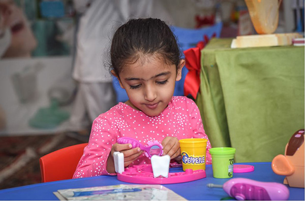 كما تضمنت تنوعا جذابا بوجود أركان صحية تثقيفية وترفيهية تشمل عددا من الأركان منهم الفحص بالكاميرا الفموية، التي تهدف لكشف وتوضيح حالة الأسنان من تسوس والتهاب اللثة وتراكم الجير، والتعرف على الطريقة الصحيحة لتنظيف الأسنان.
