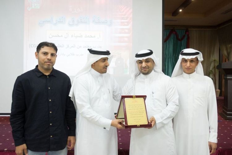 وفي ختام الورشة قدم رئيس جمعية أم الحمام الخيرية حسين آل جبر، درعا تذكاريا للمدرب محمد ال محسن نظير جهوده ومساهمته الهادفة في تهيئة وإعداد المتفوقين.