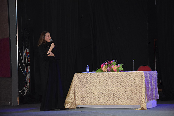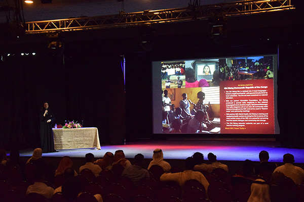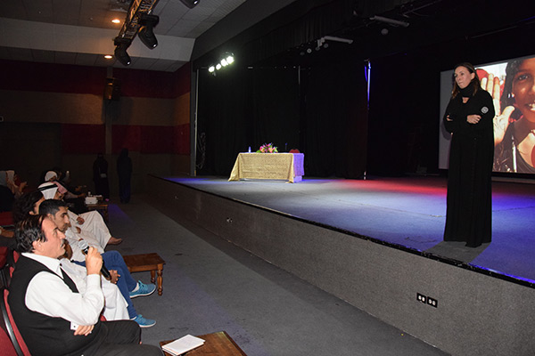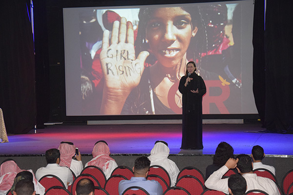 حيث شاركت الحضور في الدمام بتجربتها في مجال انتاج الافلام وخصت الافلام المتعلقة بحقوق تعليم المرأة حول العالم.