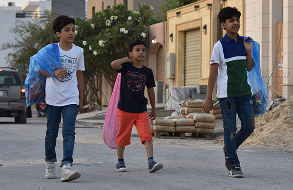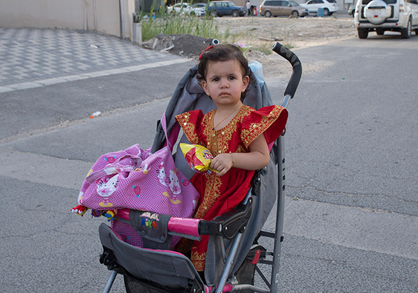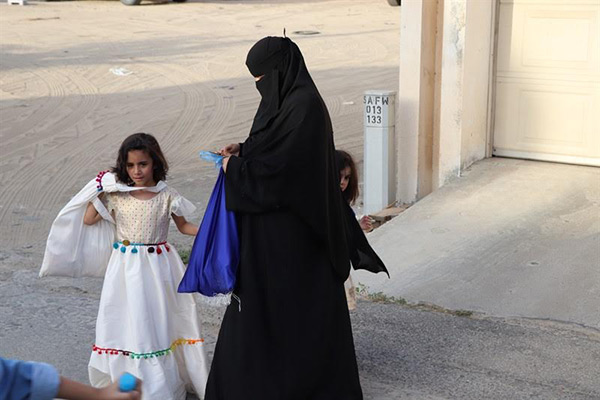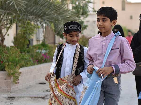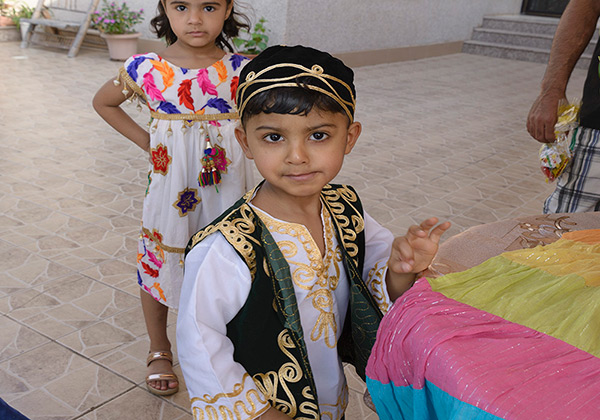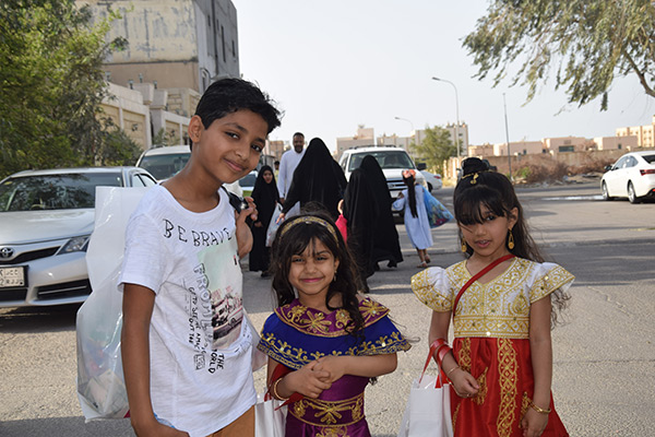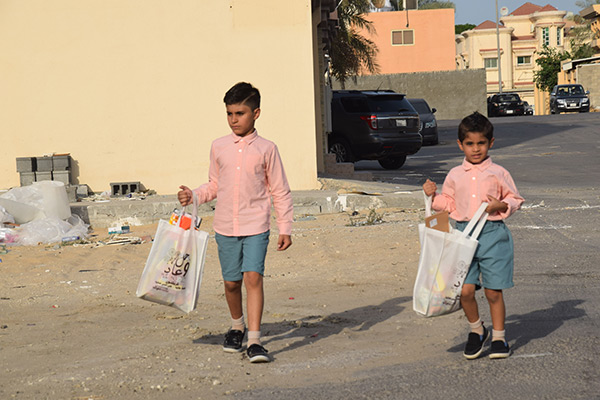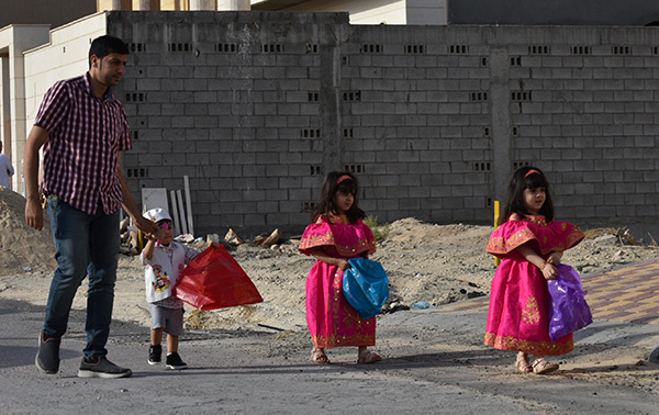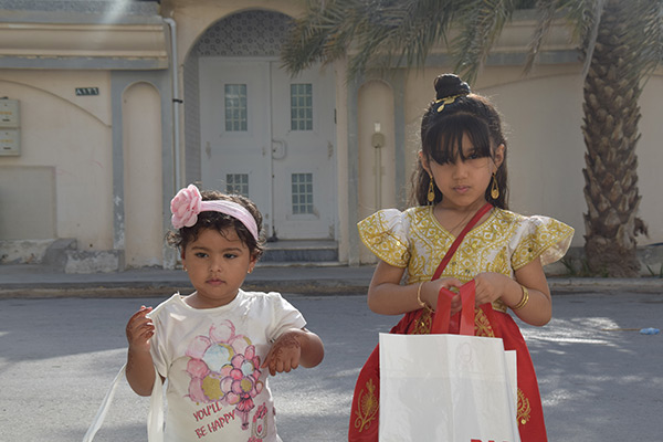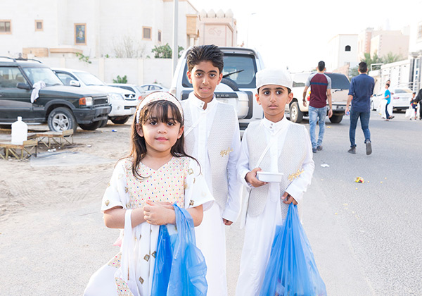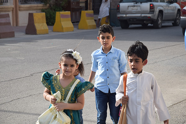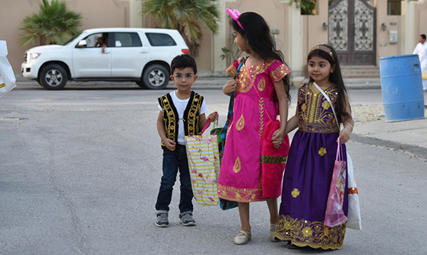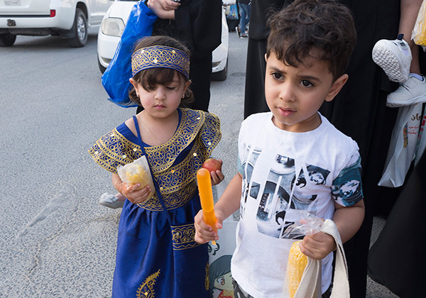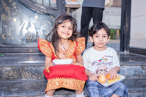 الأطفال الذين رددوا اهازيج شعبية خاصة بالمناسبة حرص الكثير منهم على ارتداء الملابس التراثية فيما حرصت العوائل على توزيع الحلوى عند أبواب منازلهم.