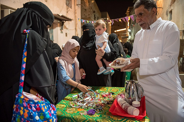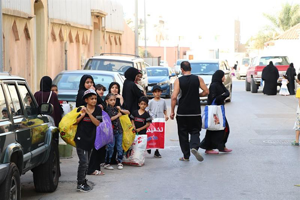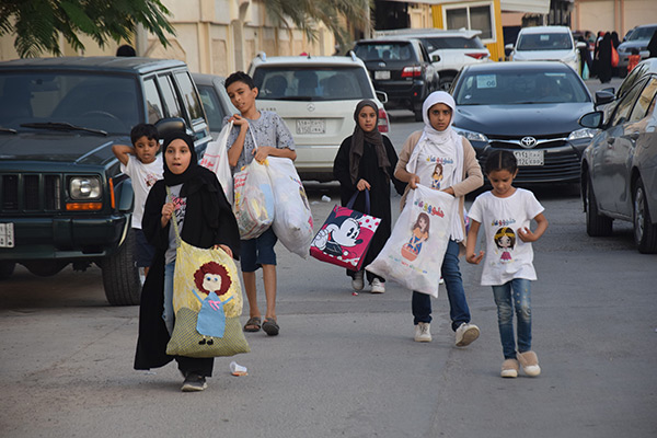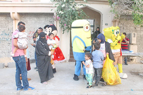واكتظت أحياء المناطق الشعبية بالحضور من مختلف الأعمار حيث يقبل عليها الضيوف من كل مكان بسبب تقارب بيوتها وأكثرها تفتح أبوابها لتقديم الهدايا وهو ما يساعد على جمع أكبر كم من التوزيعات والهدايا.