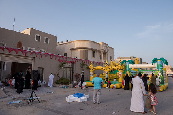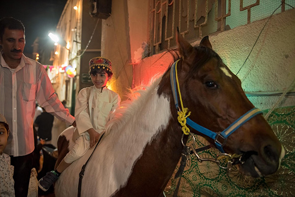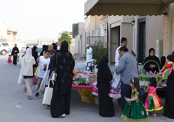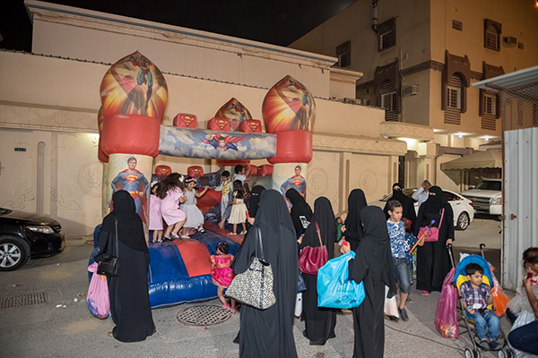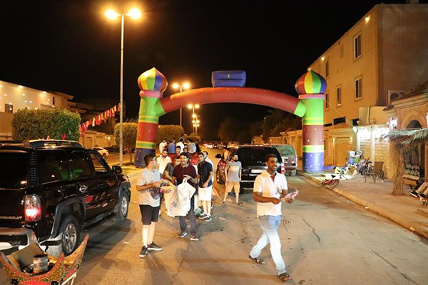 وشهدت الاحتفالات التي تستمر حتى الساعة الثانية عشر بعد منتصف الليل منافسة كبيرة بين الأحياء والقرى من خلال استقبال الضيوف وابتكار طرق لتقديم الهدايا والتوزيعات وأيضاً بناء مضائف تراثية وشعبية تعبر عن روح المناسبة.
