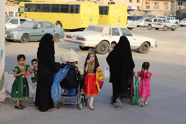 وبادرت اللجان التطوعية في مختلف مدن وقرى المحافظة لتنظيم حركة السير حيث ارتدوا سترات لتميزهم الفرق المنظمة وسعوا لعملية تنظيم حركة المرور بين السيارات ومئات الأطفال والنساء خلال تنقلهم بين الأحياء.