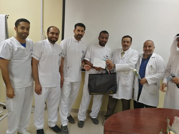 وتم تكريم جميع الممرضين والممرضات من قبل مدير المركز والاطباء والمسؤولين بالمركز وتم توزيع بطاقات الشكر والتقدير المقدمة من وزير الصحة الدكتور توفيق الربيعة التي لاقت صدى تشجيعي لدى الطاقم التمريضي.