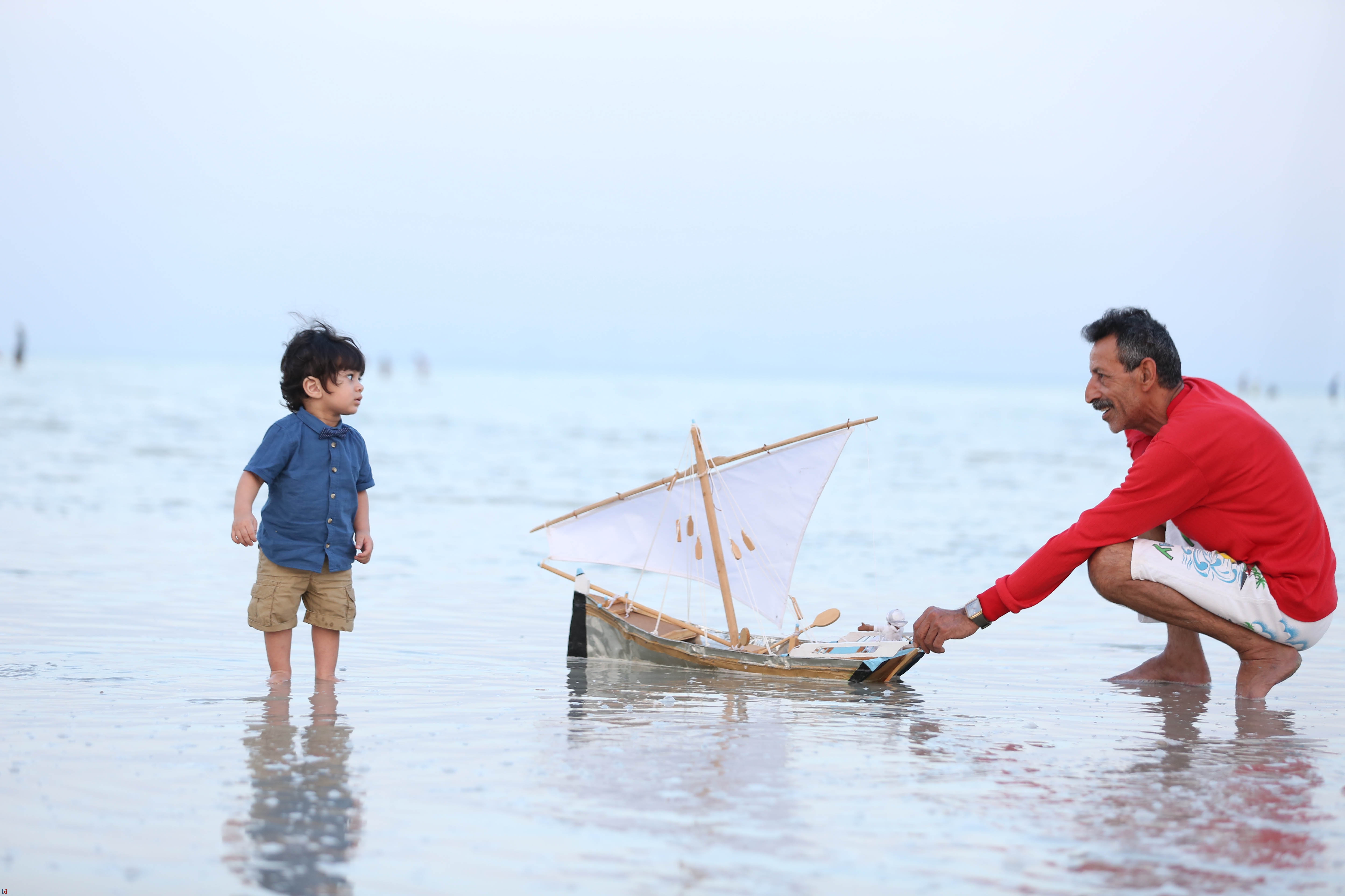 نجار يعلم الأطفال إبحار السفن في مياه ”الرملة البيضاء“ بتاروت
