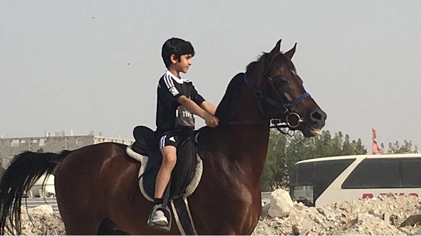 وأشار إلى تعلمه الأسياسيات في ركوب الخيل، والتحكم بها، وتنظيفها، ونوع طعامها، ومعلومات أخرى عن الخيل العربي الأصيل.