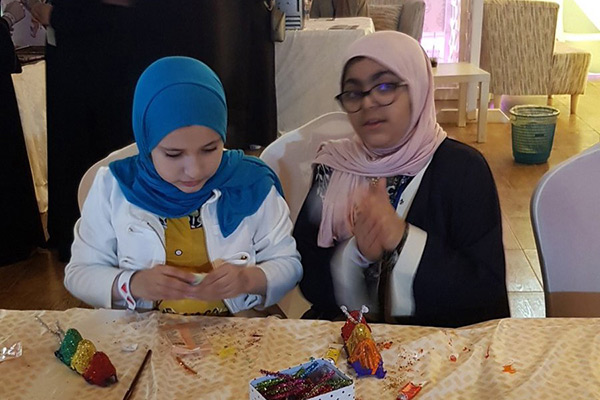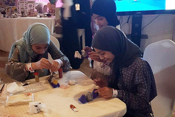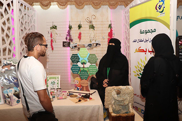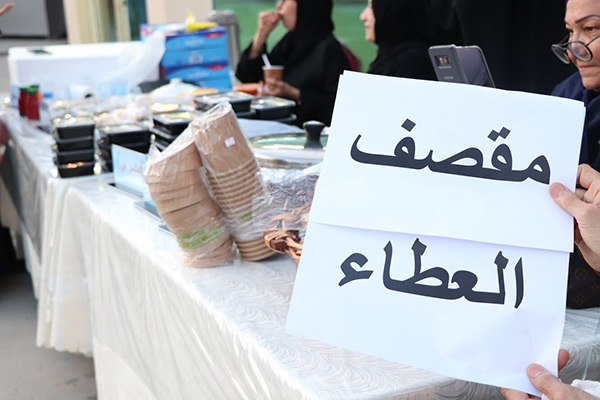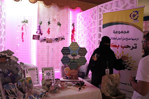 ووابدت سعادتها لتجاوب الزائرين من جميع الفئات مع الركن واوضحت باحتواء الركن على مبيعات بسيطة ”بسعر رمزي“ لصالح جمعية العطاء النسائية.