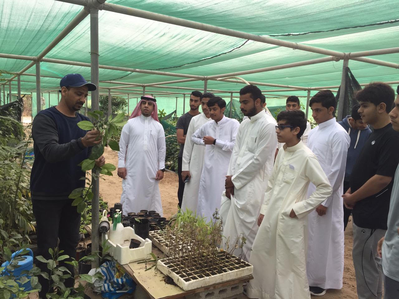 تعرف طلاب مدرسة العوامية الثانوية على طرق ري النباتات الحديثة والتقليدية خلال زيارتهم يوم الثلاثاء لمشتل ومنحل فرع وزارة البيئة والمياه والزراعة بالمنطقة الشرقية.