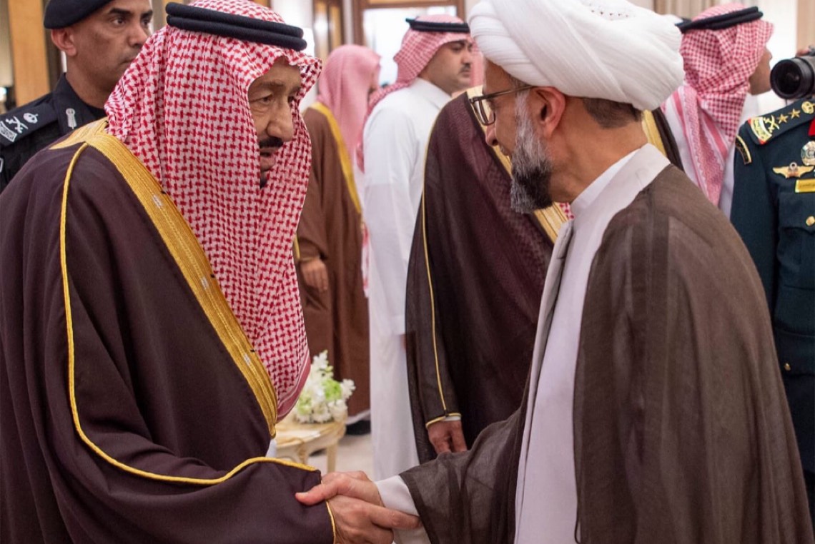 ثم تشرف الجميع بالسلام على خادم الحرمين الشريفين.
