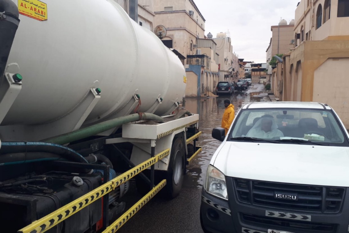 بلدية القطيف تشرع في تصريف مياه الأمطار في الشوارع والأحياء السكنية