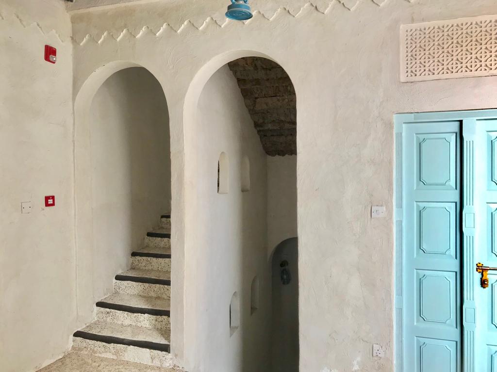 وتم زخرفة البيت بزخارف جصية في الممرات والغرف. وكانت هذه الزخارف تدل قديما على مكانة وغنى صاحب البيت. كما عمد الحرفيان إلى عمل بوابات منقوشة ونوافذ خشبية بالخشب الصلب وفتحات للإنارة تسمى ”الروشن“.