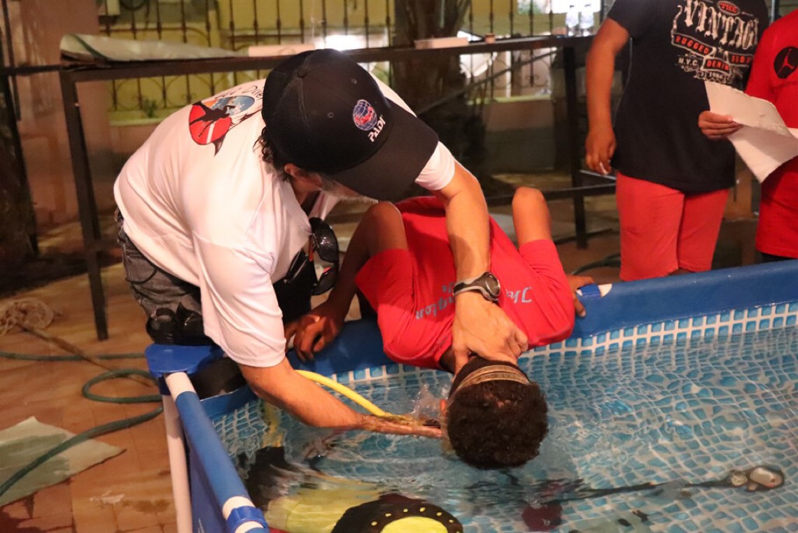 وقدم فريق هاي دايفر تجربة ”اكتشف الغوص“ بطريقة الواقع الإفتراضي إضافة للتنفس تحت الماء والتي نالت إعجاب ورضا مرتادي حفل الناصفة في ركنهم الذي استضافتهم فيه بوابة أهل البيت