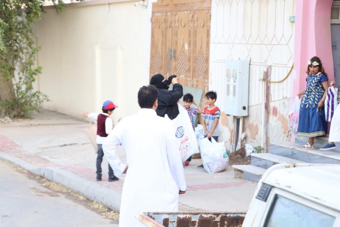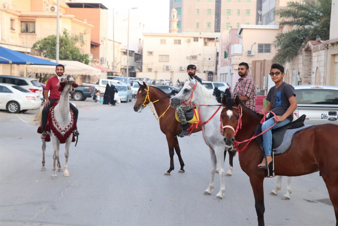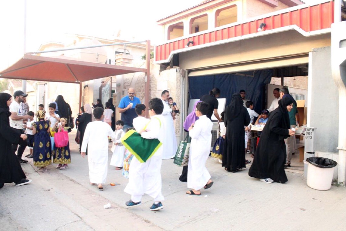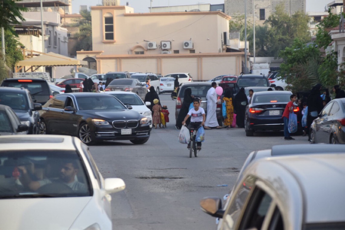 ورصدت ”جهينة الاخبارية“ حشود المحتفلين الذين علب عليهم النساء والأطفال في أجمل حللهم وهم يتنقلون بين المنازل يتلقون الهدايا والحلويات.