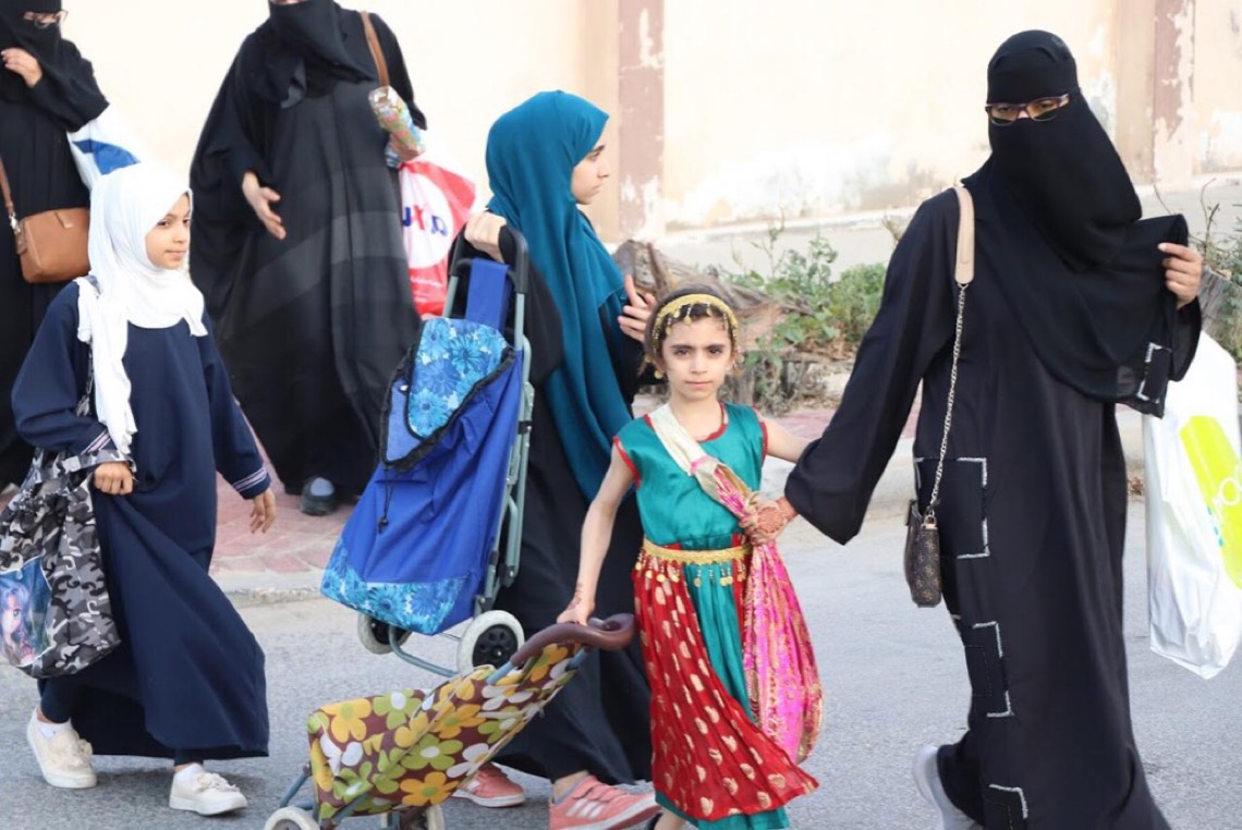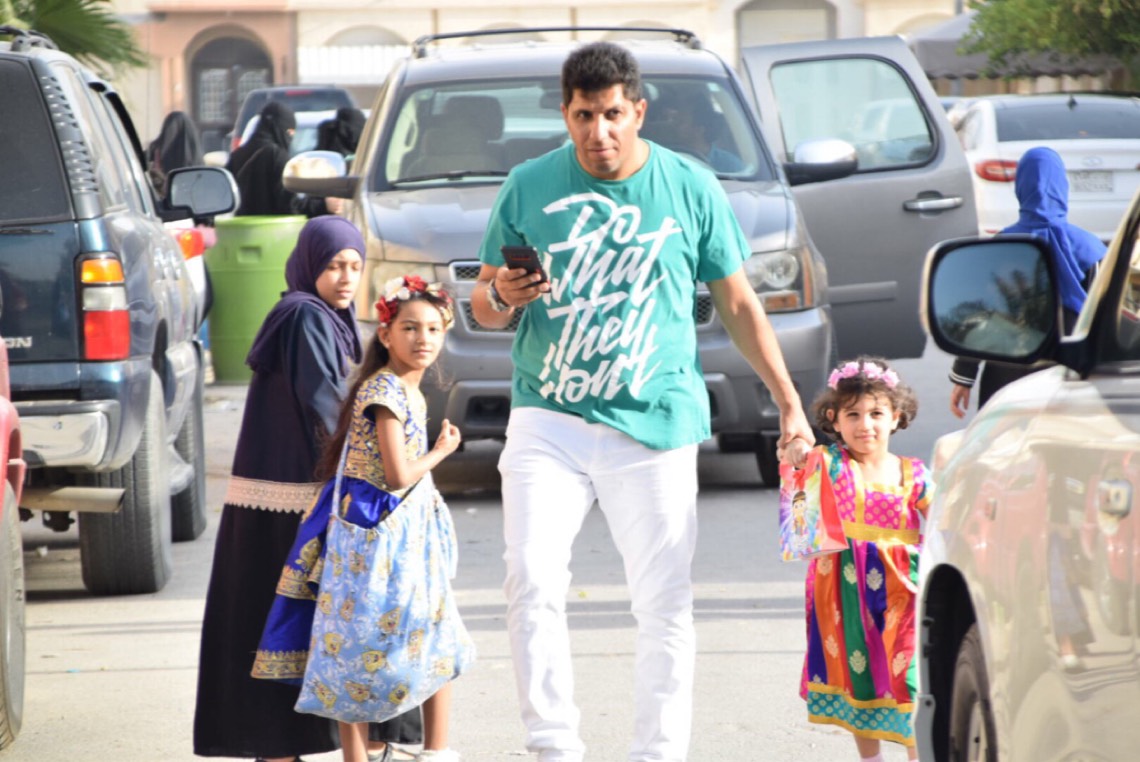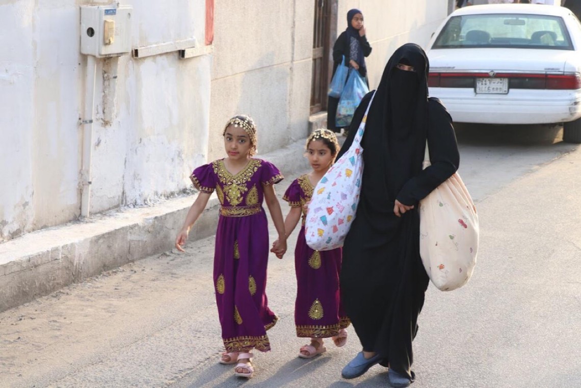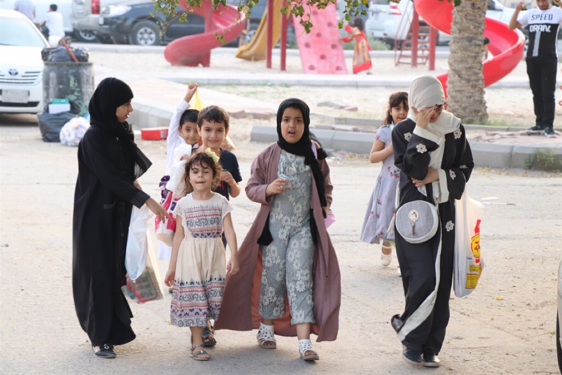 ورصدت ”جهينة الاخبارية“ حشود المحتفلين الذين علب عليهم النساء والأطفال في أجمل حللهم وهم يتنقلون بين المنازل يتلقون الهدايا والحلويات.