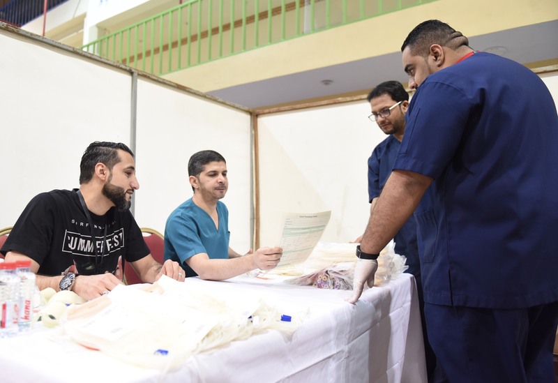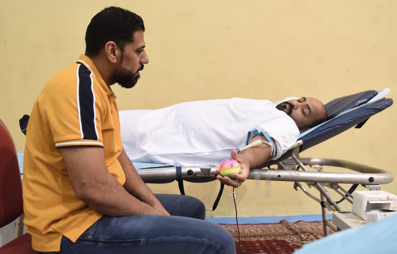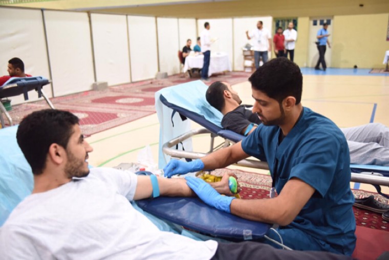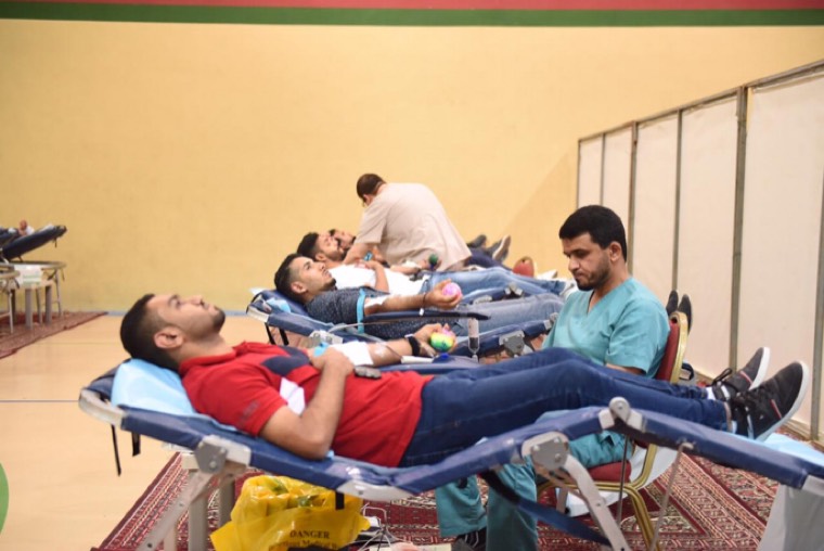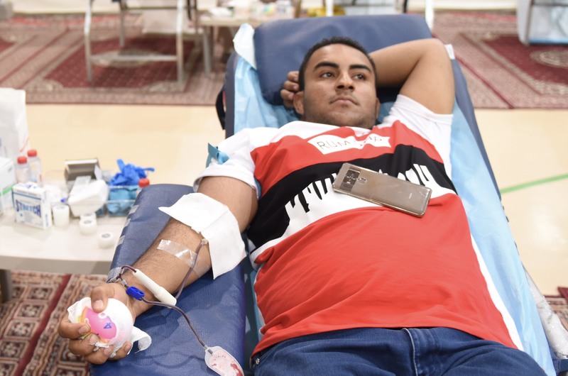 والتقط الزميل الشرقي صورا للشباب الذين توافدوا على صالة النادي ضمن الحملة التي جاءت بعنوان «انقذ نفسا فدمك دمهم».