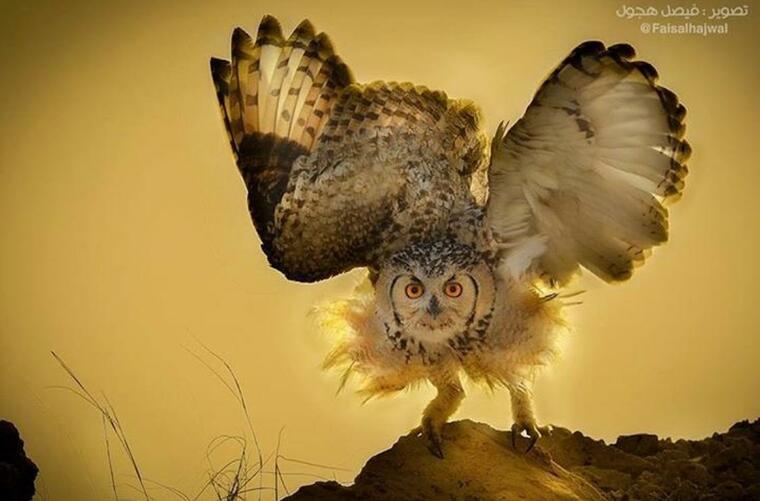 والمصور السعودي فيصل هجول كانت لقطاته لطائر البوم أحد مصادر تفوقه وفوزه بجوائز مسابقات التصوير.