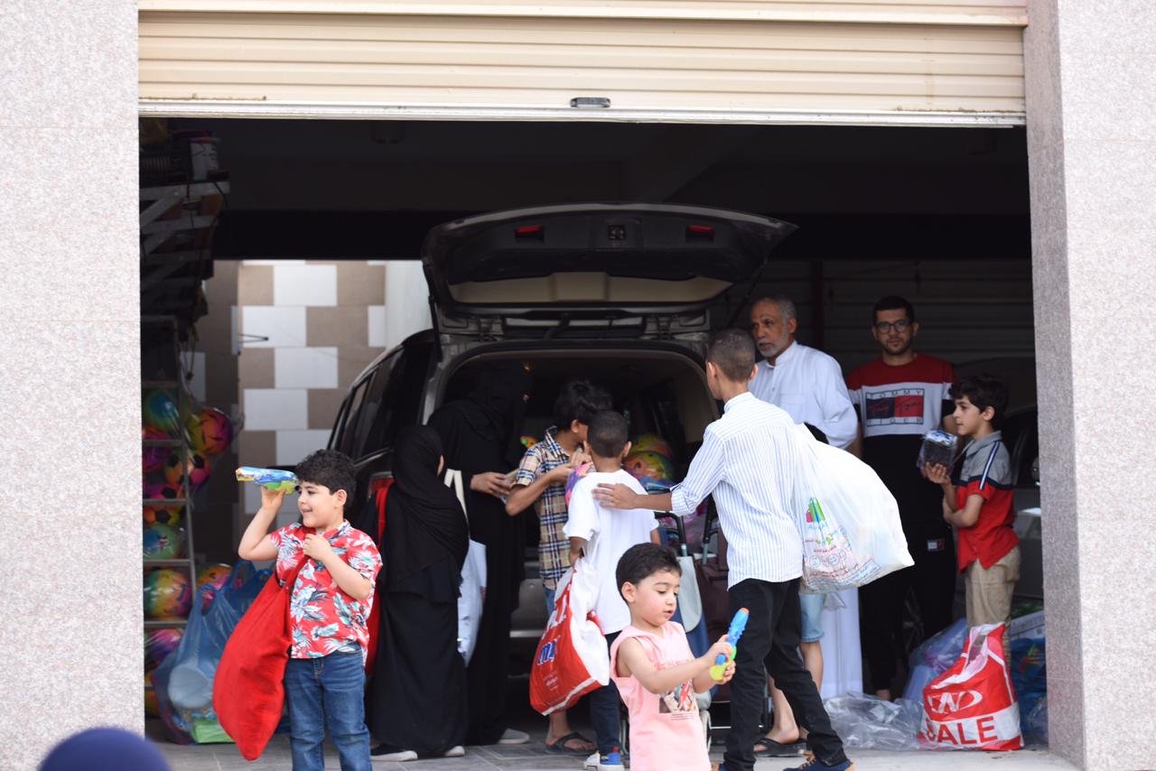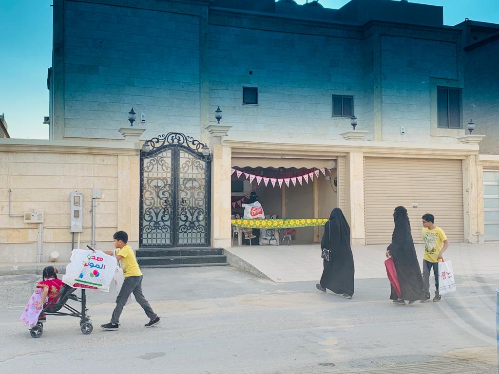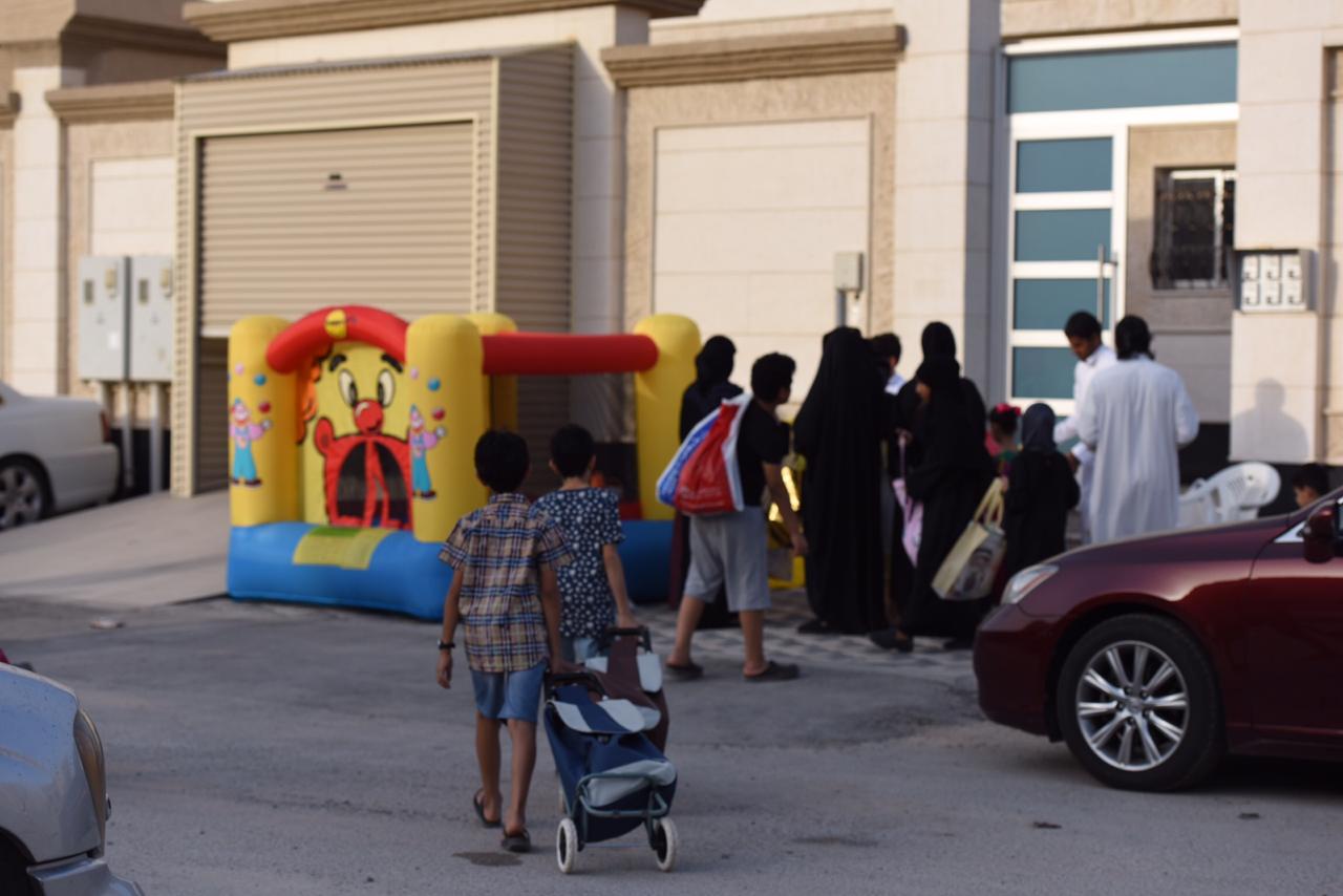 وشاركت بعض الأسر ابناءها الفرحة في أجواء عائلية حيث تشهد شوارع وأحياء القطيف وقراها أجواء الاحتفالات فتضاء السماء بالألعاب النارية وتوزع الحلويات على المارة في الشوارع .