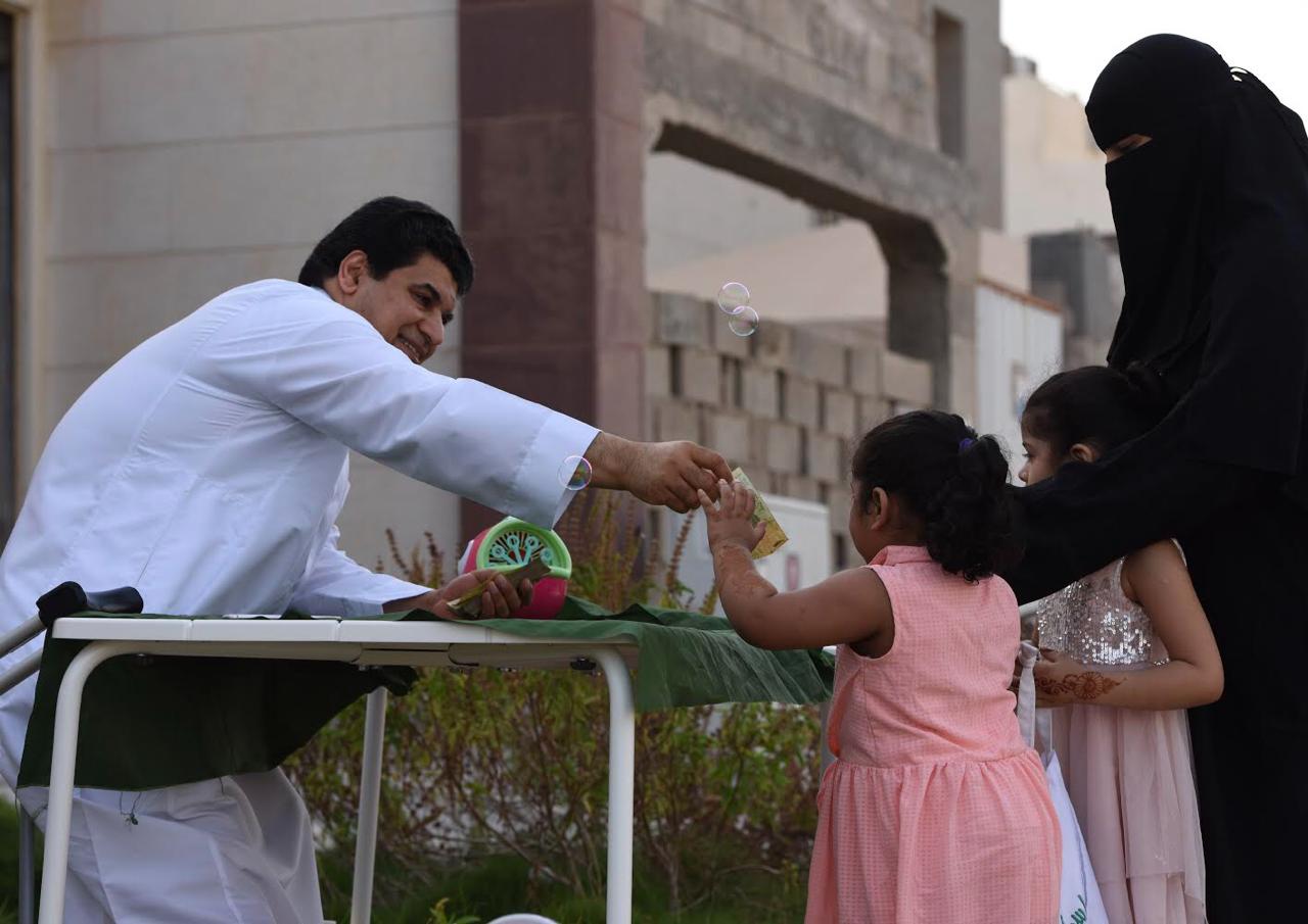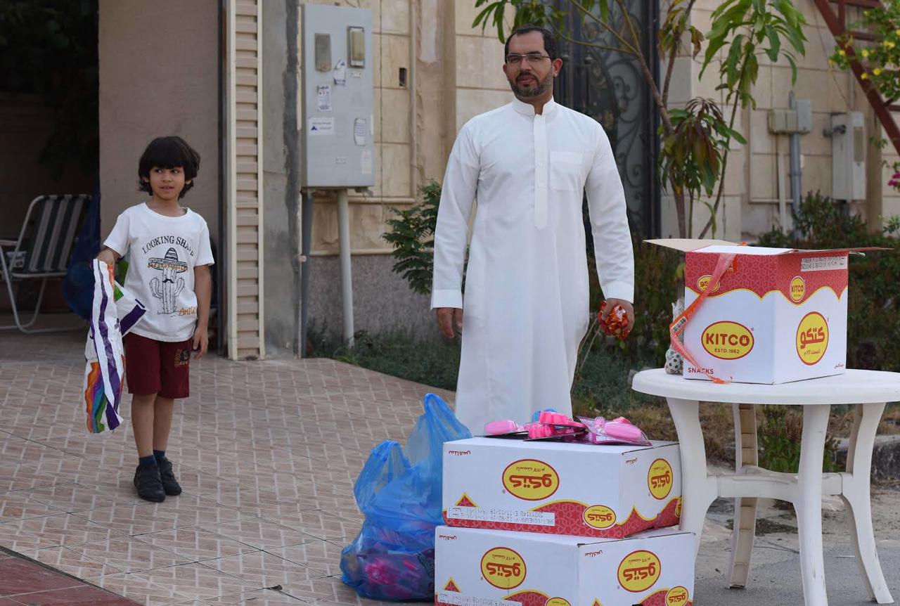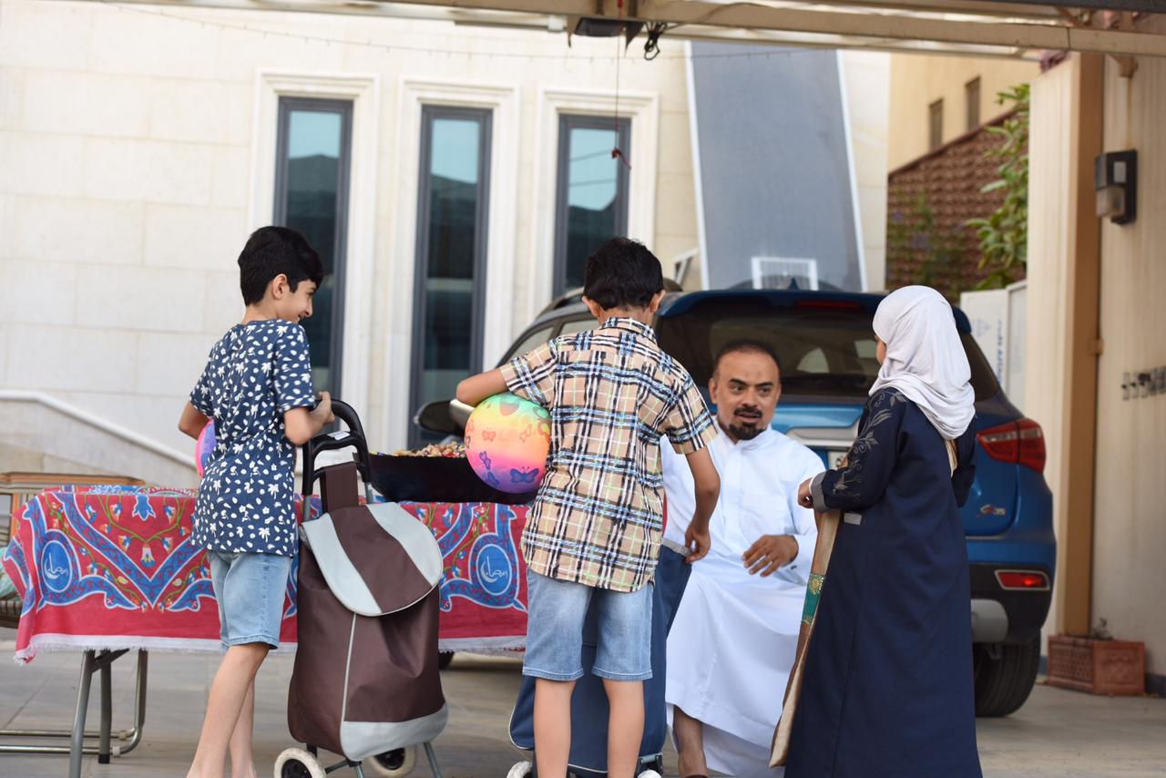 وشاركت بعض الأسر ابناءها الفرحة في أجواء عائلية حيث تشهد شوارع وأحياء القطيف وقراها أجواء الاحتفالات فتضاء السماء بالألعاب النارية وتوزع الحلويات على المارة في الشوارع .