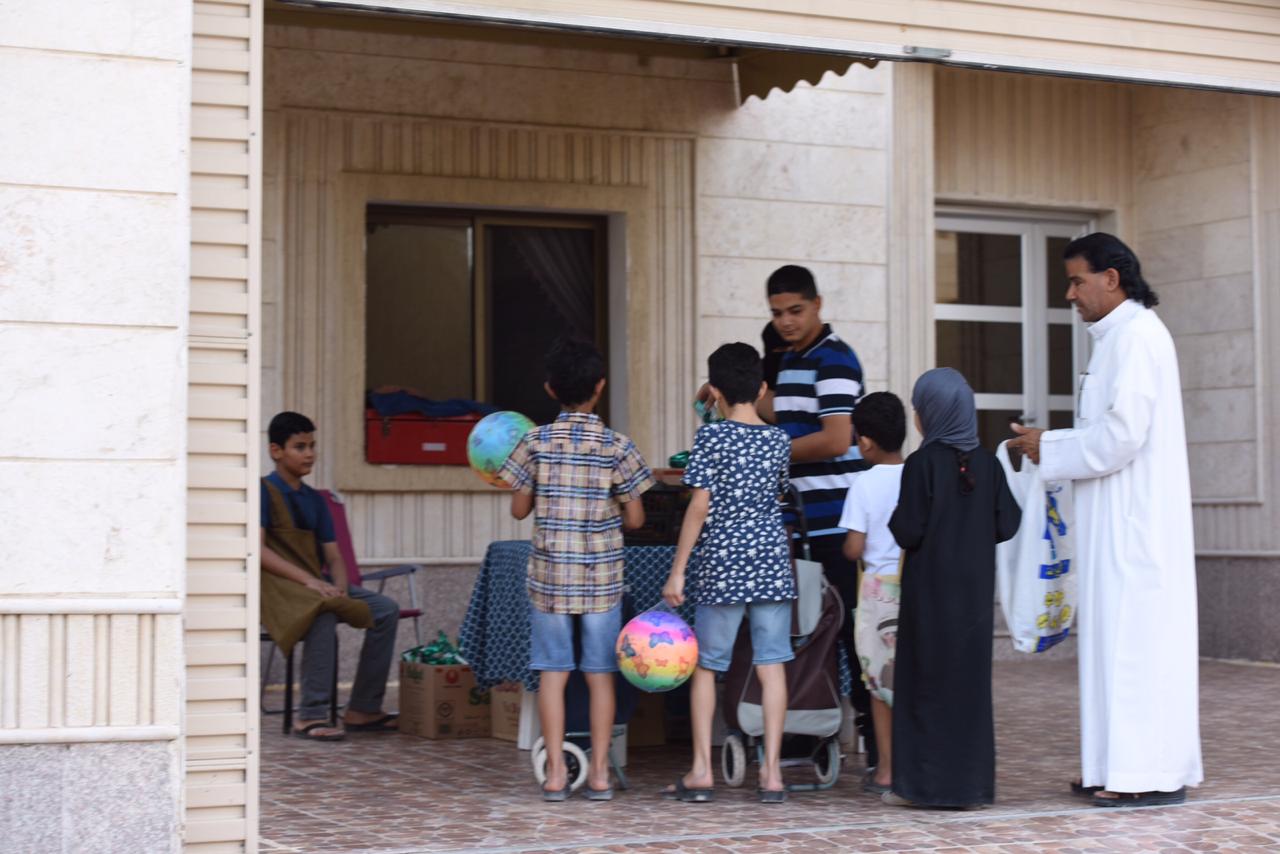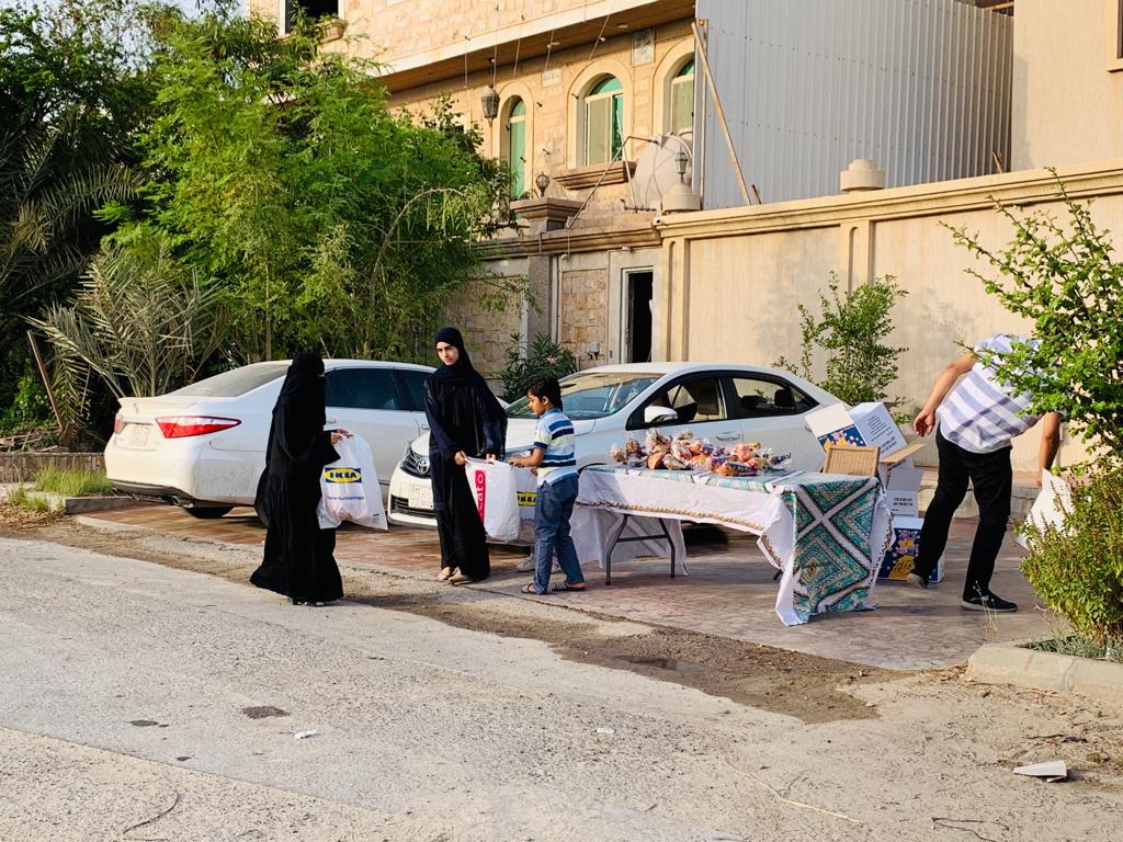 واستقبل الأهالي عند البوابات ضيوفهم بماء الورد والبخور وأعواد الريحان والتوزيعات التي تختلف حسب الأهالي فمنهم من يوزع ألعاب وهدايا أو مبالغ نقدية أو اطعمة ومشروبات.