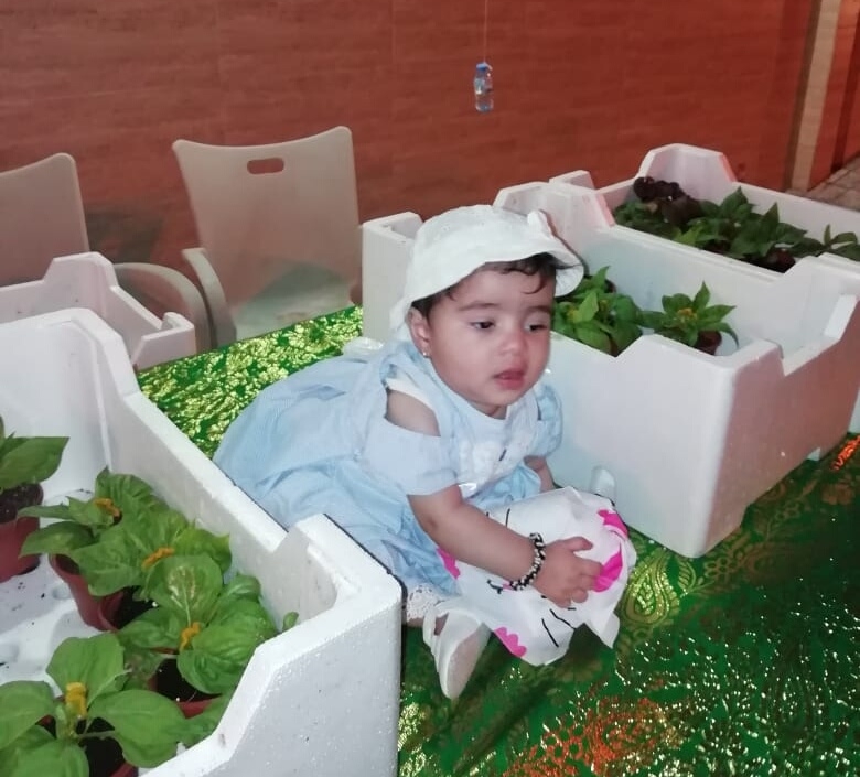 وقالت ”أسعى لتنمية حب النباتات والزراعة في الأطفال، فبيئتنا صحراوية ولو غرسنا فيهم حب الزراعة لساهمنا في زيادة الرقعة الخضراء وقللنا من مستوى التلوث البيئي بزيادة غطاء النبات“.