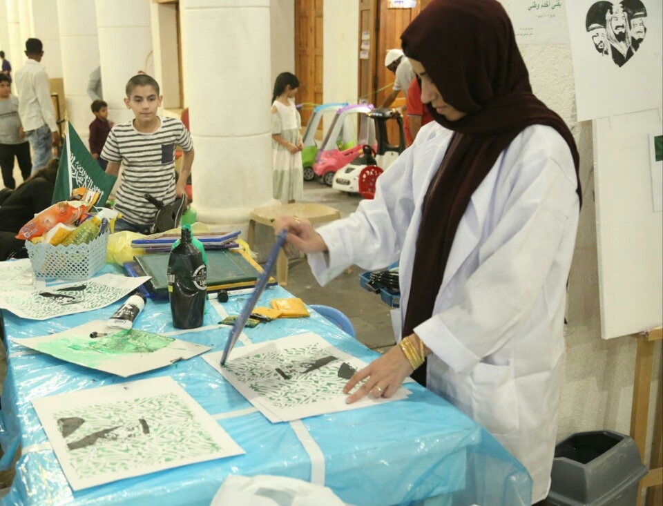 تفاعل جمهور المدينة المنورة مع ورشة الطباعة ”بفني أخدم وطني“ التي قدمتها التشكيلية كريمة المسيري يومي الجمعة والسبت في الحي التراثي بمنتزه الملك فهد المركزية.