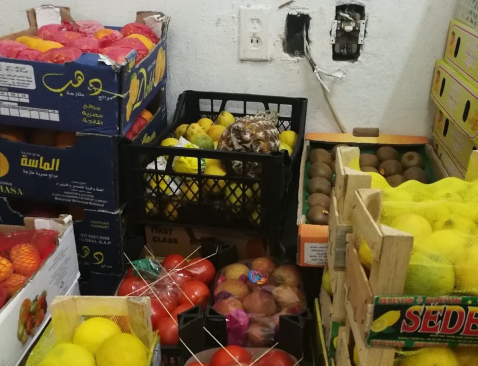 وأضاف تم ضبط 600 كيلو من الفواكه والخضروات يتم تعليبها وتغليفها تمهيدا لتوزيعها على عدد من المراكز التجارية.