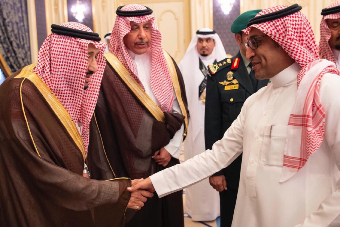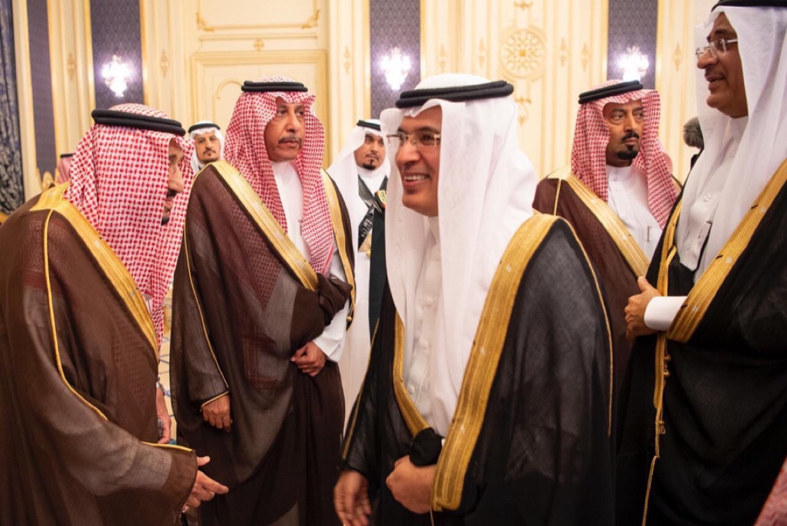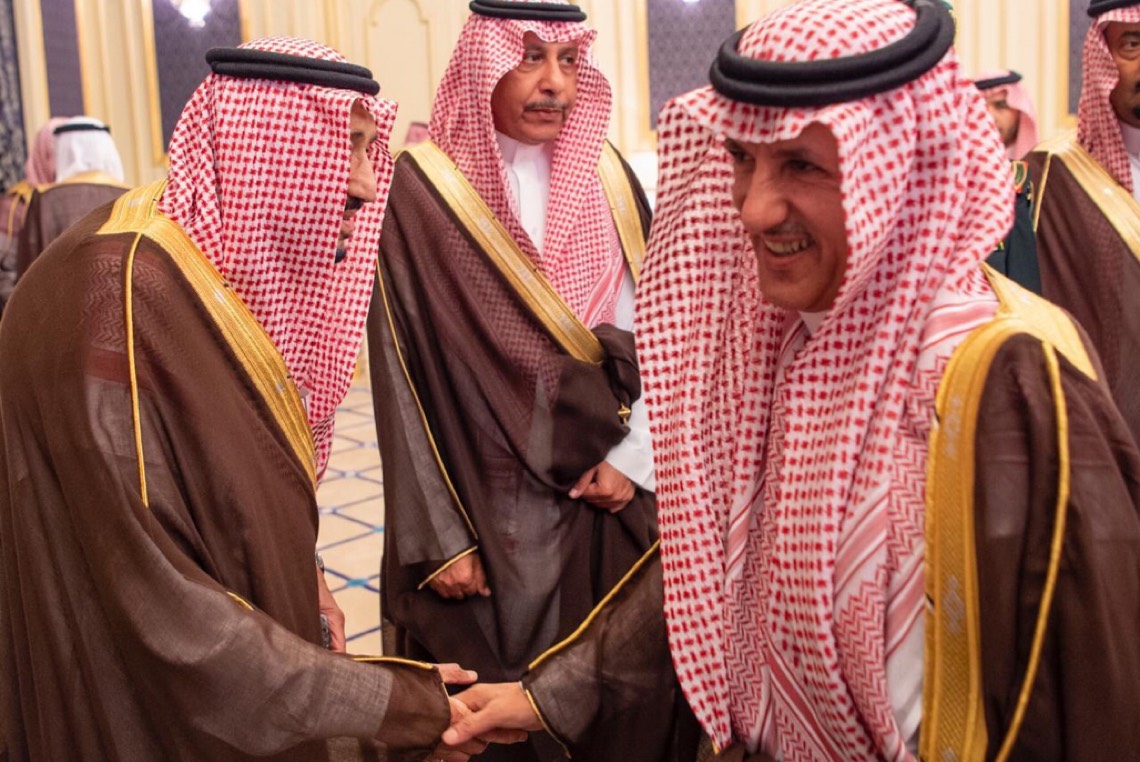 في بداية الاستقبال، تشرّف الجميع بالسلام على خادم الحرمين الشريفين.