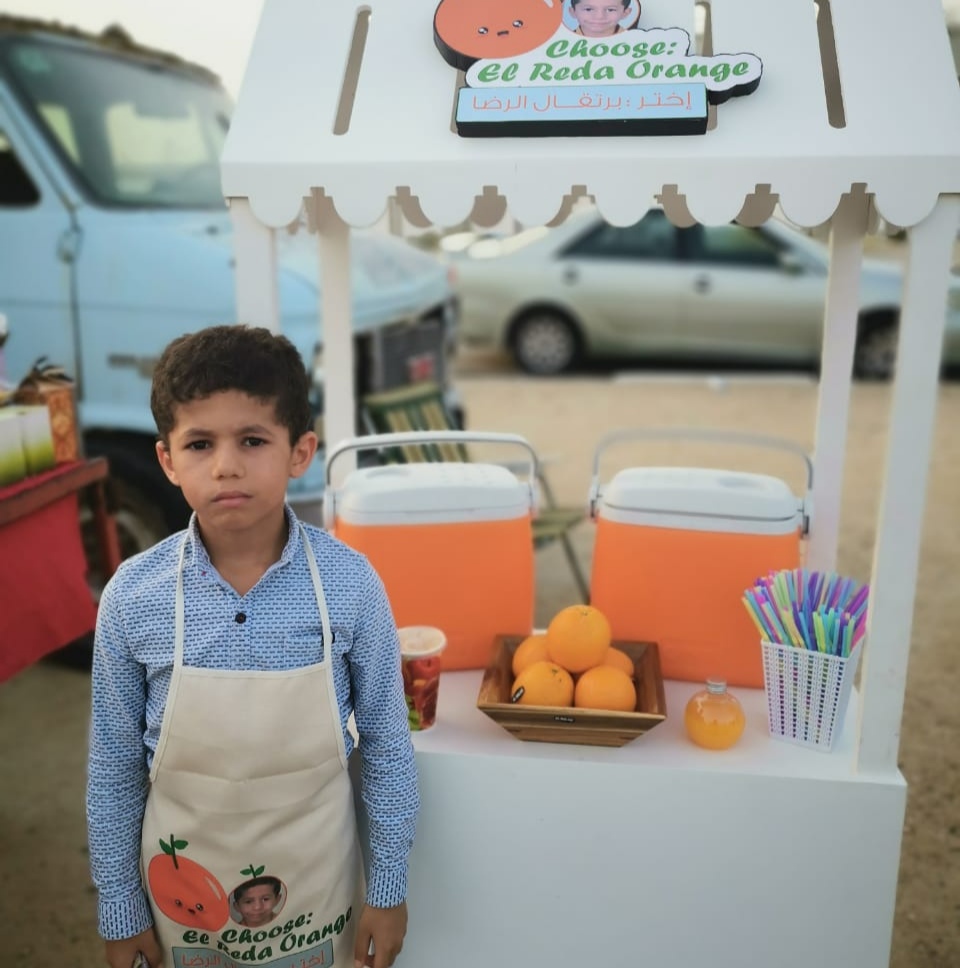 الطفل الرضا حيدر علي آل سليمان ذو السبع سنوات من مدينة صفوى وبمساعدة والدته أطلق في وقت سابق مشروعه الصغير «إختر برتقال الرضا - El reda Orange Choose».