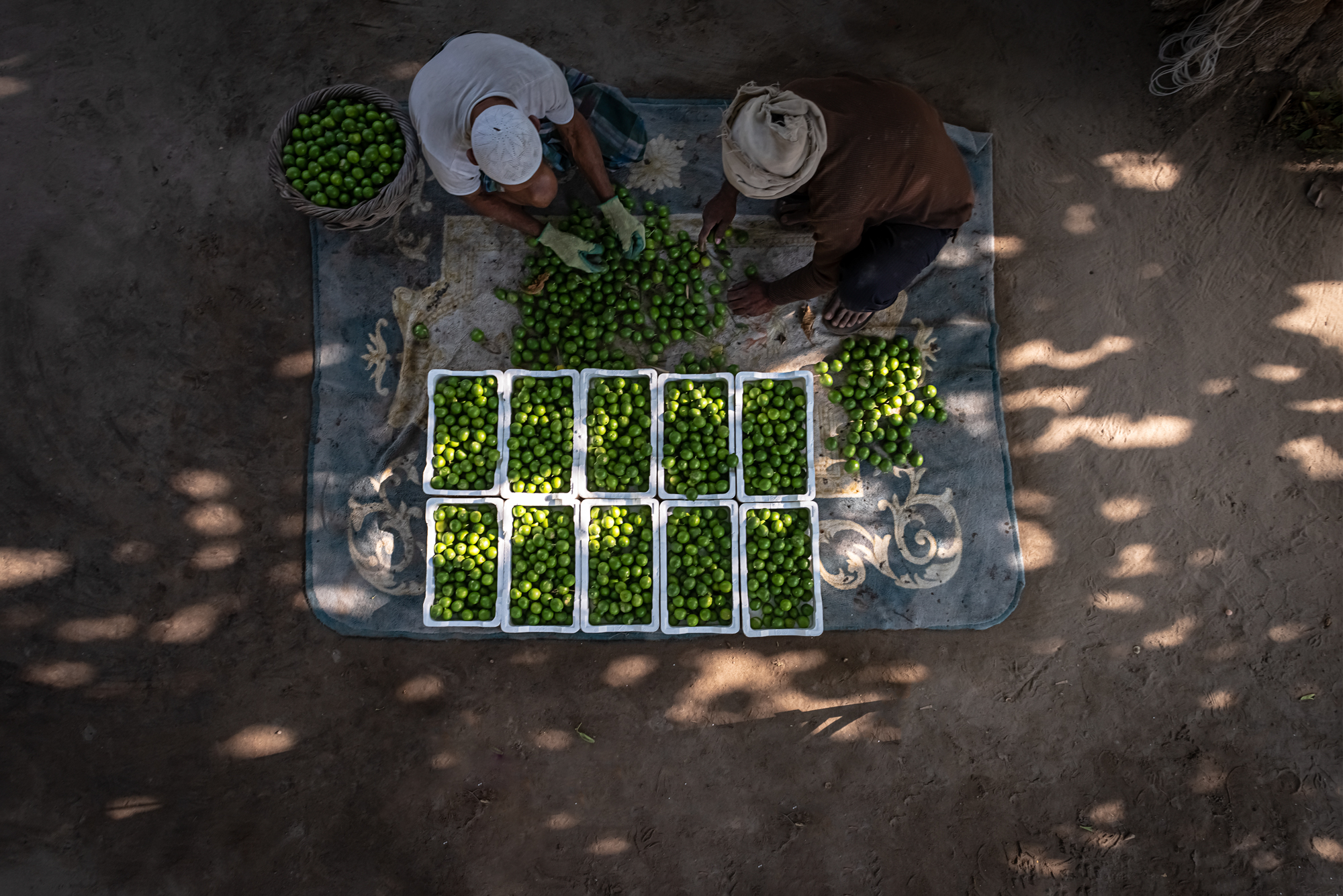 وقال وهو يعبأ حاويات الليمون التي صفها بجانبه "لا ينتهي دور الليمون الاخضر في المطبخ فقط وأنما يدخل في الزينة فقد كانت النساء تغلي في الماء بعض حبات من الليمون اليابس بعد كسرها قليلاً، ثم تترك لتبرد، وبعدها تعجن بها الحناء فتصير داكنة اللون عند تخضيب اليدين أو القدمين بها.
