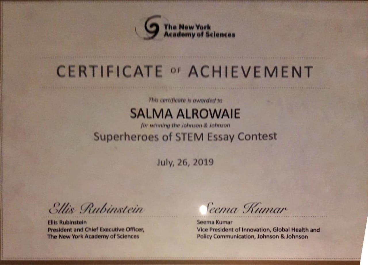 وقالت الرويعي التي تدرس في مدارس التربية الإسلامية قسم الدبلوما الأمريكية في الرياض الفوز هو إنجاز عظيم لي، خصوصاً لكوني أول سعودية تفوز بهذه المسابقة وأول سعودية في البرنامج، مضيفة ”شرف كبير لي أن أمثل وطني“.