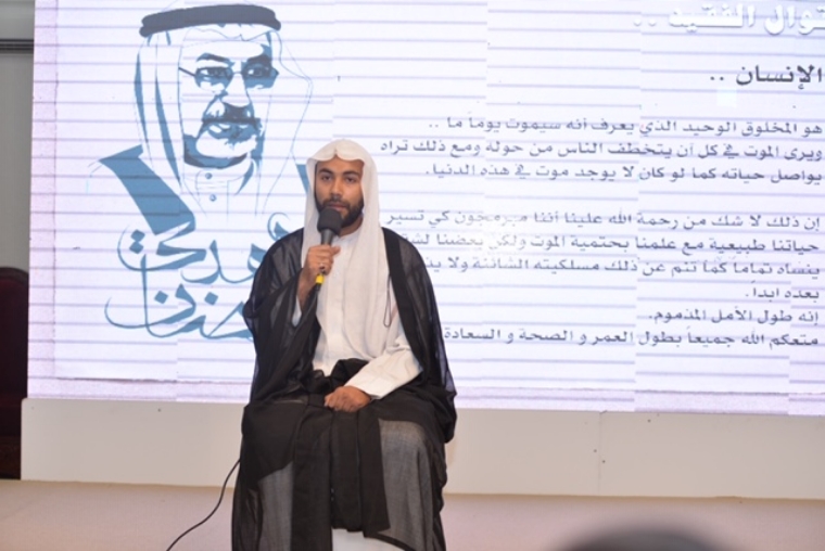 وألقى كلمة زوجة المرحوم أم ياسين والتي كانت بعنوان « الذكرى السنوية» نيابة عنها ابنها الدكتور محمد ومما جاء فيها : ” نتذكر كلماتك دوماً ، كل شيء في الحياة متزمن وأن الثابت الوحيد في الحياة هو التغير فليتك تعود لتعلم أن وجودك حياً في قلوبنا قد تحدى قوانين الحياة، وهو الثابت الجديد العصى على الزمن تغييره “.